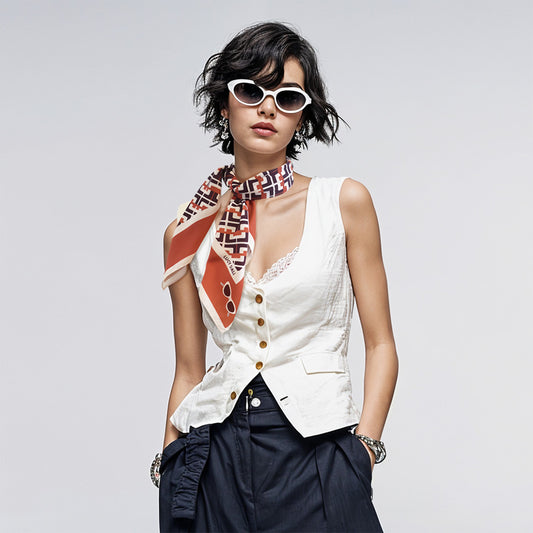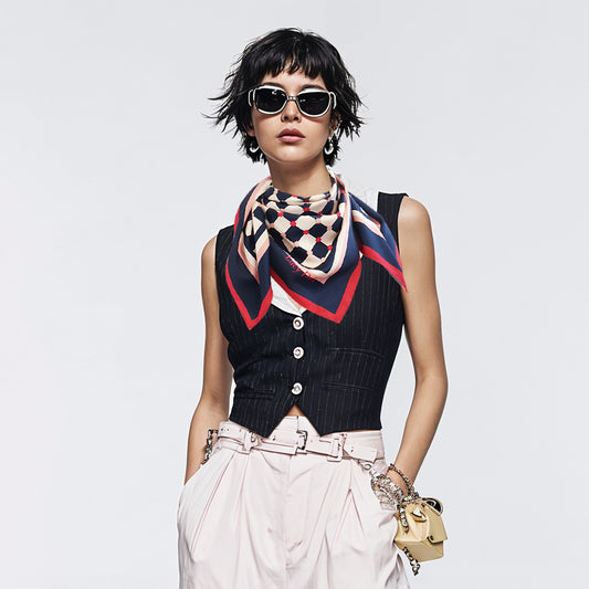 Premium 100% Mulberry Silk Square Scarf - Geometric repertoire 30"x30"