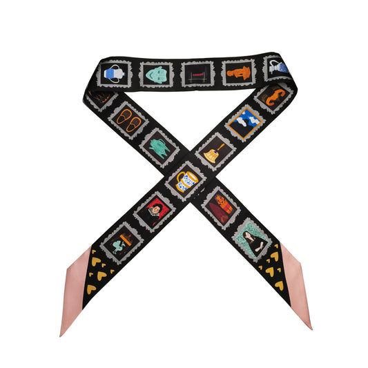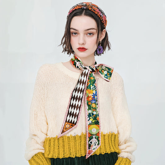 Premium 100% Mulberry Silk Skinny Scarf - Museum Pattern