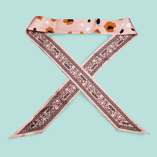 Premium 100% Mulberry Silk Skinny Scarf - Paisley Leopard Pattern