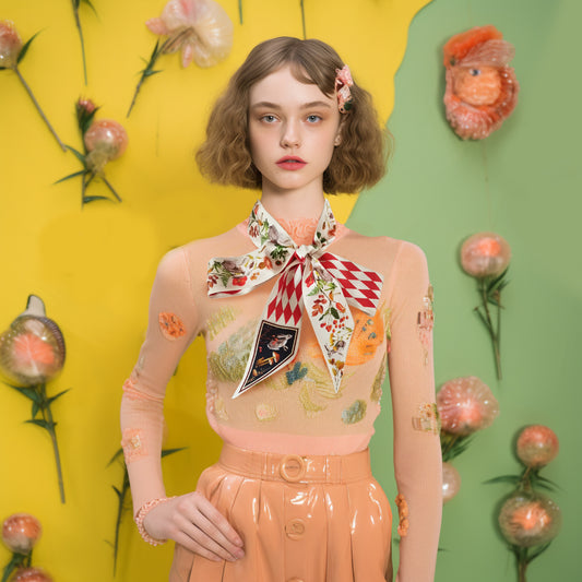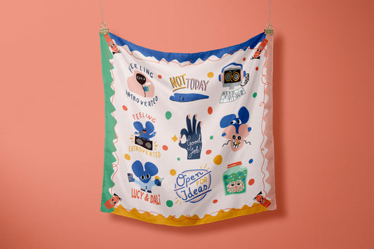 Premium 100% Mulberry Silk Square Scarf - Emotional laboratory Pattern 30"x30"