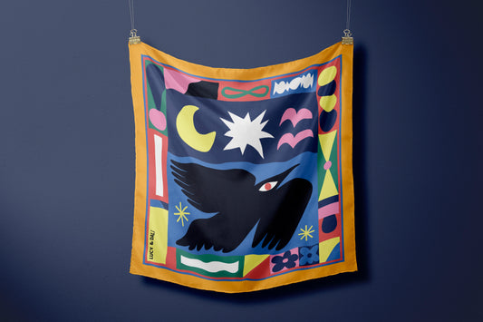 Premium 100% Mulberry Silk Square Scarf - Black Bird 30"x30"