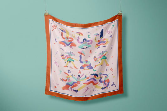 Premium 100% Mulberry Silk Square Scarf - Dance Pattern 30"x30"