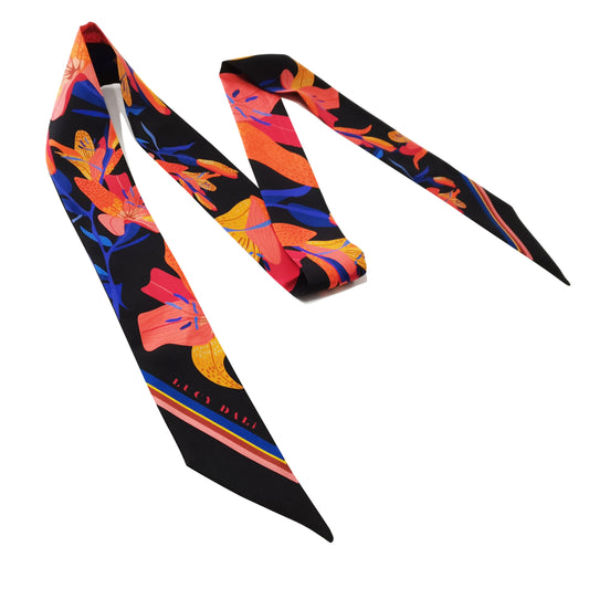 Premium 100% Mulberry Silk Skinny Scarf - Night Lily Pattern