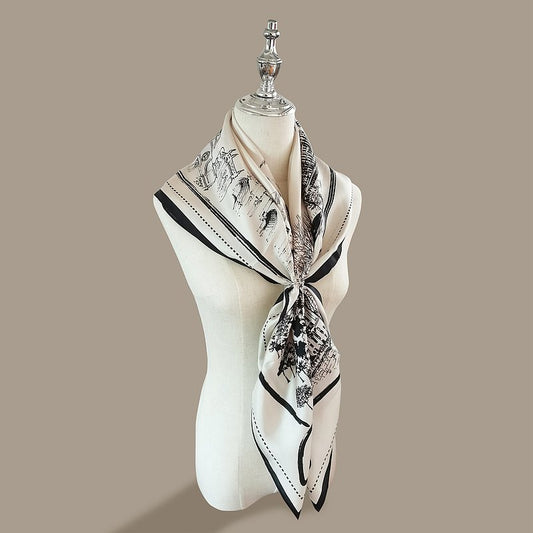 Premium 100% Mulberry Silk Square Scarf - Architectural Sketch Pattern 35"x35"