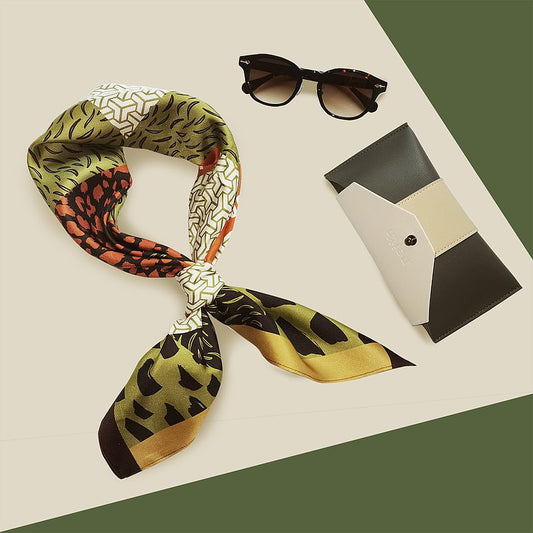 Premium 100% Mulberry Silk Square Scarf - Geometric animal Pattern 30"x30"
