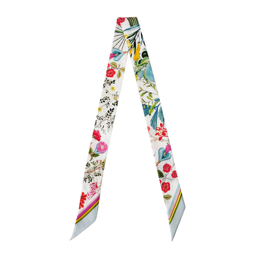 Premium 100% Mulberry Silk Skinny Scarf - Tropical Floral Pattern