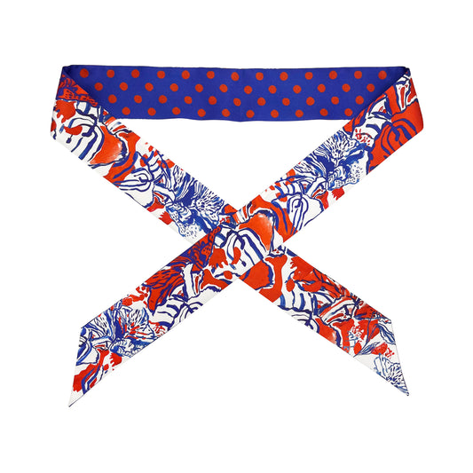 Premium 100% Mulberry Silk Skinny Scarf - Mirror Bow Pattern